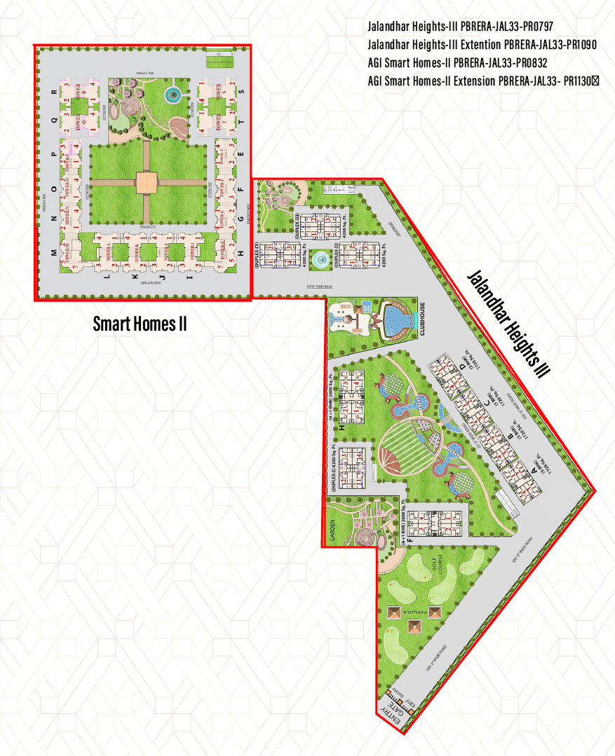 AGI Infra Limited proudly introduces Jalandhar Heights III, an exclusive residential project offering ultra-luxury living with spacious 3 BHK (1720 sq.ft.) and 4 BHK (2800 sq.ft.) apartments, including elegant duplex units. Located in the serene and well-connected Pholriwal area of Jalandhar, this gated community combines modern architectural brilliance with lush greenery and world-class amenities for an unmatched lifestyle.